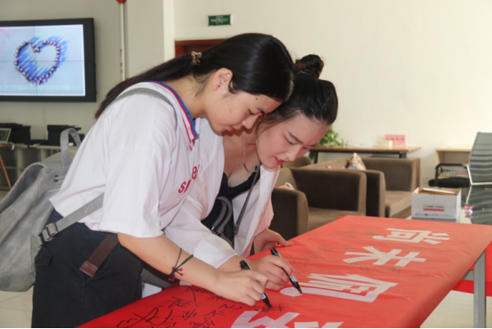 毕业生需进行档案领取,党团关系转接,学位证、毕业证、报到证等证件的领取和学生证注销等流程,方可完成离校手续办理。工作开始前,由院学生组织的几名干事进行粘贴班级名称引导,铺设签名横幅,放映毕业照幻灯片等工作,完成了会场布置。手续办理过程中,学院老师为毕业生提取档案资料,耐心解答毕业生的问题,细心引导毕业生完成手续办理流程,竭诚为毕业生服务。毕业生完成离校手续的办理后,来到签名横幅前署下自己的名字,写出对母校的留恋与祝福。