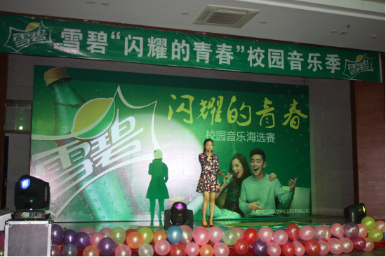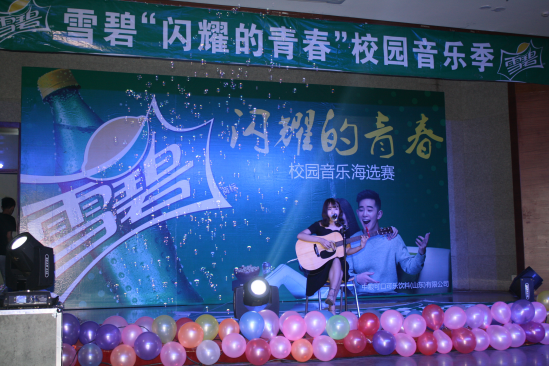 为活跃校园文化氛围,加强学校精神文明建设,展现我校学生朝气蓬勃、积极向上的青春风采。2016年5月22日晚18:30,由工商学院和经贸学院联合承办的雪碧“闪耀的青春”校园音乐海选赛---山管站成功举办。
