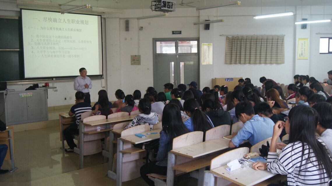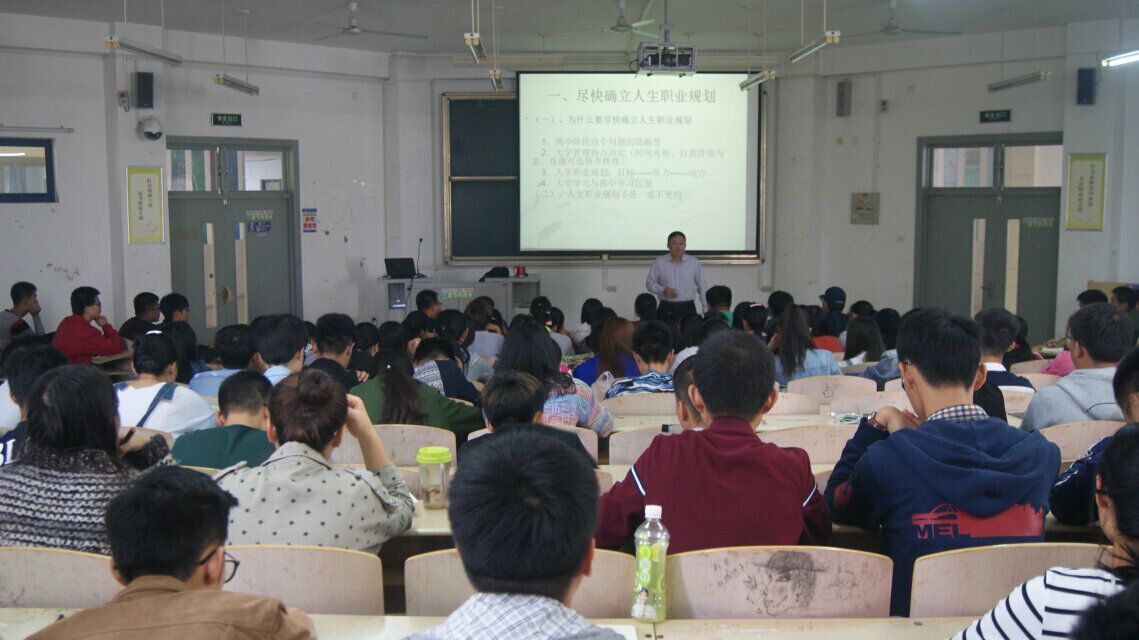 为了更好地引导新生树立正确的人生观和价值观,明确目标,做好人生职业规划,2015年10月工商学院在合同教学楼举办了2015级本科生职业生涯规划讲座。讲座由孙家学院长主讲。 孙院长首先提出对于职业规划,既要仰望星空,又要脚踏实地。其次从就业和考研两大方面和新生进行了探讨,并对未来事业单位、国企、公务员考试、考研等的政策与形势进行了详细的分析。最后强调在校期间要坚持理论与实践相结合,不断提升自身综合素质和职业能力,不断的反思和总结,有所为,有所不为,找出适合自己发展的道路。 本次职业规划讲座使同学们能做好专业课的学习工作,早树立竞争意识、危机意识和职业规划意识,引导同学们通过对自身性格、兴趣、特长以及所处环境的客观、全面分析,充分认识自我、认清环境,积极应对社会变化,赢在起跑线。
