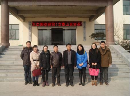 胡忠任副院长一行首先参观了立泰山茶庄,实地调研了茶庄及茶厂,随后与公司董事长董庆国先生及工作人员进行了座谈。座谈会上,我校教师听取了董事长对公司产品的介绍以及灵岩茶与灵岩寺旅游相结合的初步规划。同时针对公司在产品销售及旅游规划方面的现状,双方进行了深入交流和探讨。