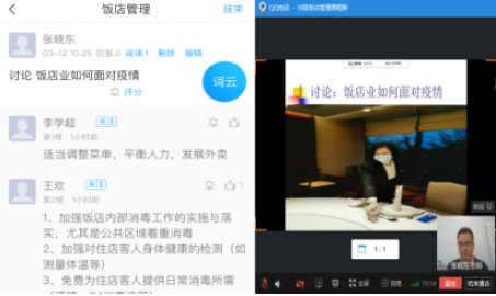 图5 张晓东老师与学生讨论饭店业如何面对疫情