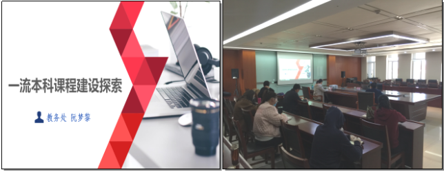 阮梦黎从政策解读、申报类别、申报材料和建设重点等方面详细解读了“一流课程”项目申报相关政策文件,详细分析了线上一流课程、线下一流课程、线上线下混合式一流课程、社会实践一流课程的建设重点,并结合课程申报经验分析了一流课程建设目前面临的形势。随后,与参会教师们进行了充分交流和讨论。