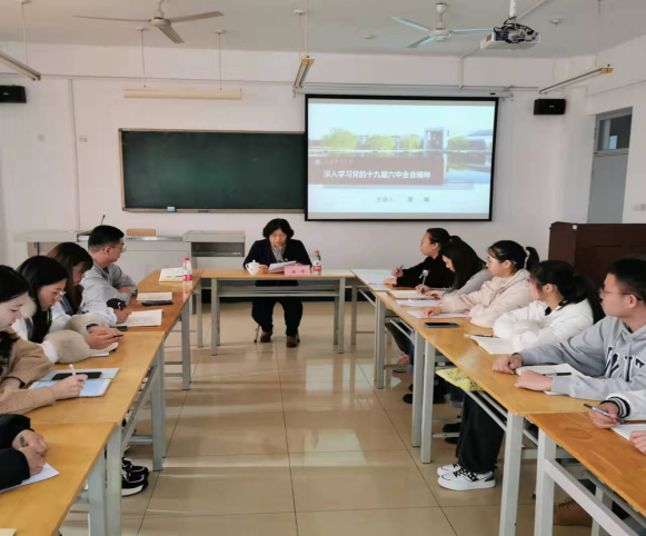 12月9日,学校党委委员、宣传部部长潘峰在博思楼203为工商学院第三学生党支部讲授了主题为“深入学习党的十九届六中全会精神——党的三个历史决议的逻辑演进和历史启示”专题思政课,支部全体党员参加学习。
