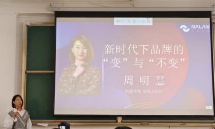 为落实立德树人根本任务,推动学生在不断变化的市场环境下感知品牌发展变革逻辑和企业创新战略,2022年11月12日,工商学院市场营销系在博学楼B201开展企业家进课堂系列讲座之“新时代下品牌的‘变’与‘不变’”主题讲座,讲座采用线上与线下相结合的方式,共200余名学生参加,讲座由纳蓝传媒创始人周明慧主讲。
