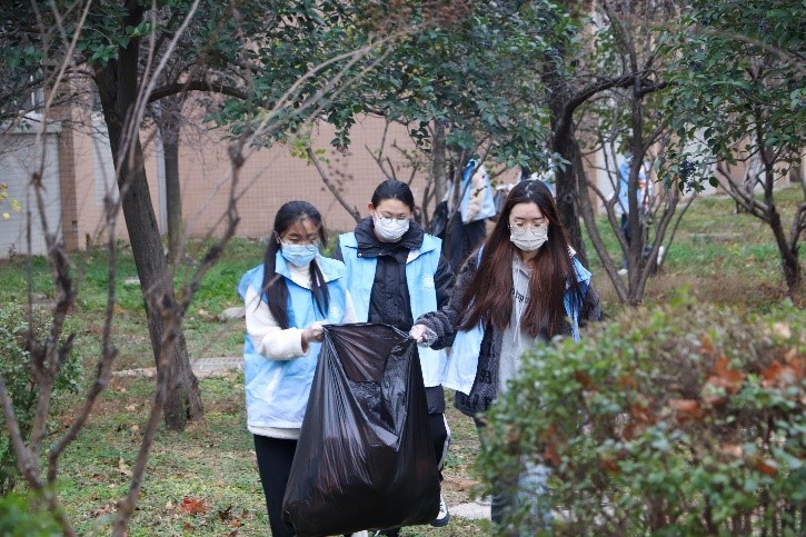在此次校园清扫志愿服务活动中,工商学子们根据安排到指定位置集合,并佩戴好口罩落实防疫要求,组织者分发衣物、工具,并有序分配各项工作;其次,志愿者接收任务,各司其职,带好工具进行志愿清扫;之后,志愿者将清扫后的垃圾进行分类,并归到指定位置;最后,志愿者代表汇报志愿工作,并进行合影留念。