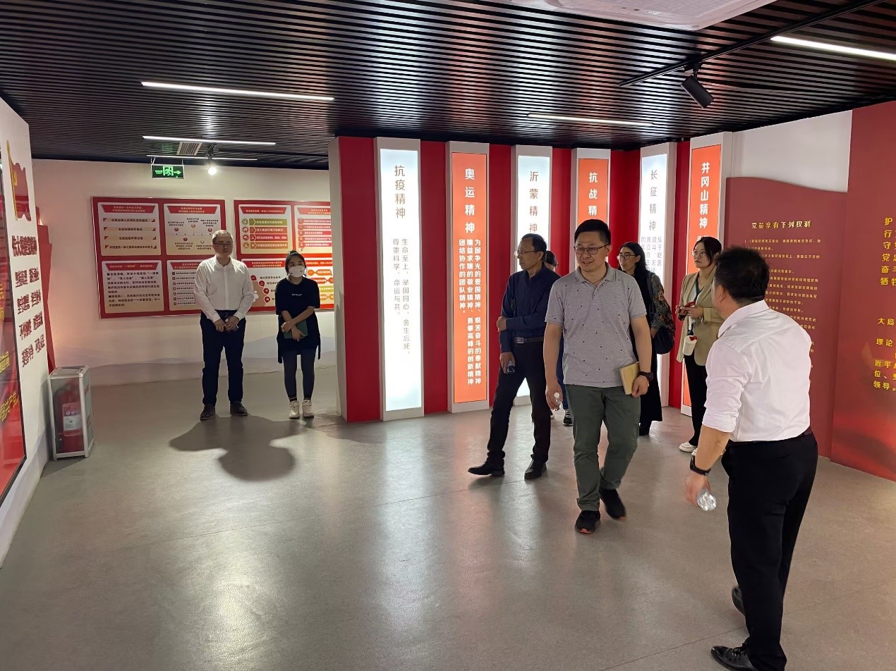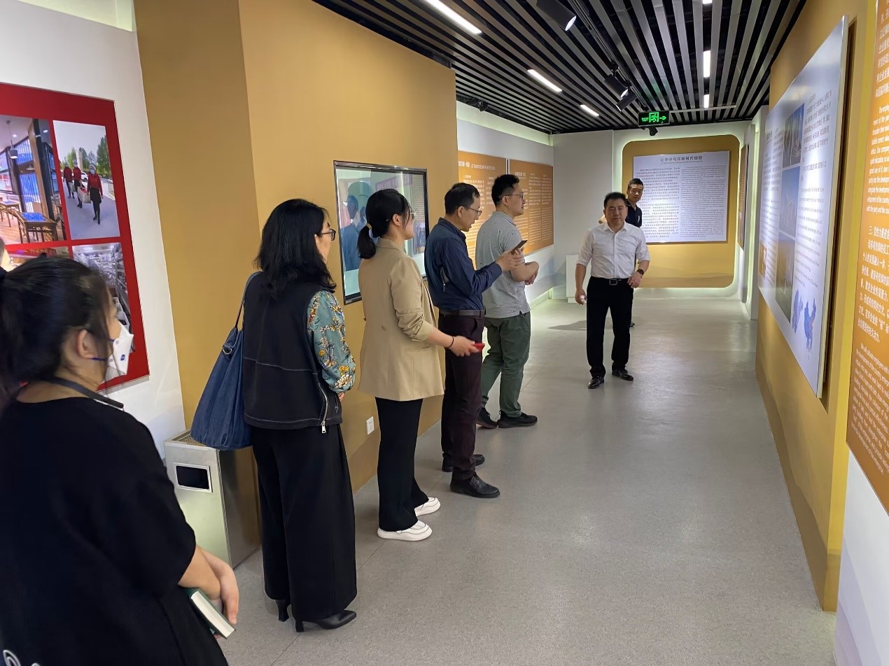 张主席带领市场营销系教师参观了超意兴公司职工之家及党性教育基地文化馆,并详细介绍了超意兴党性基地的建设情况。