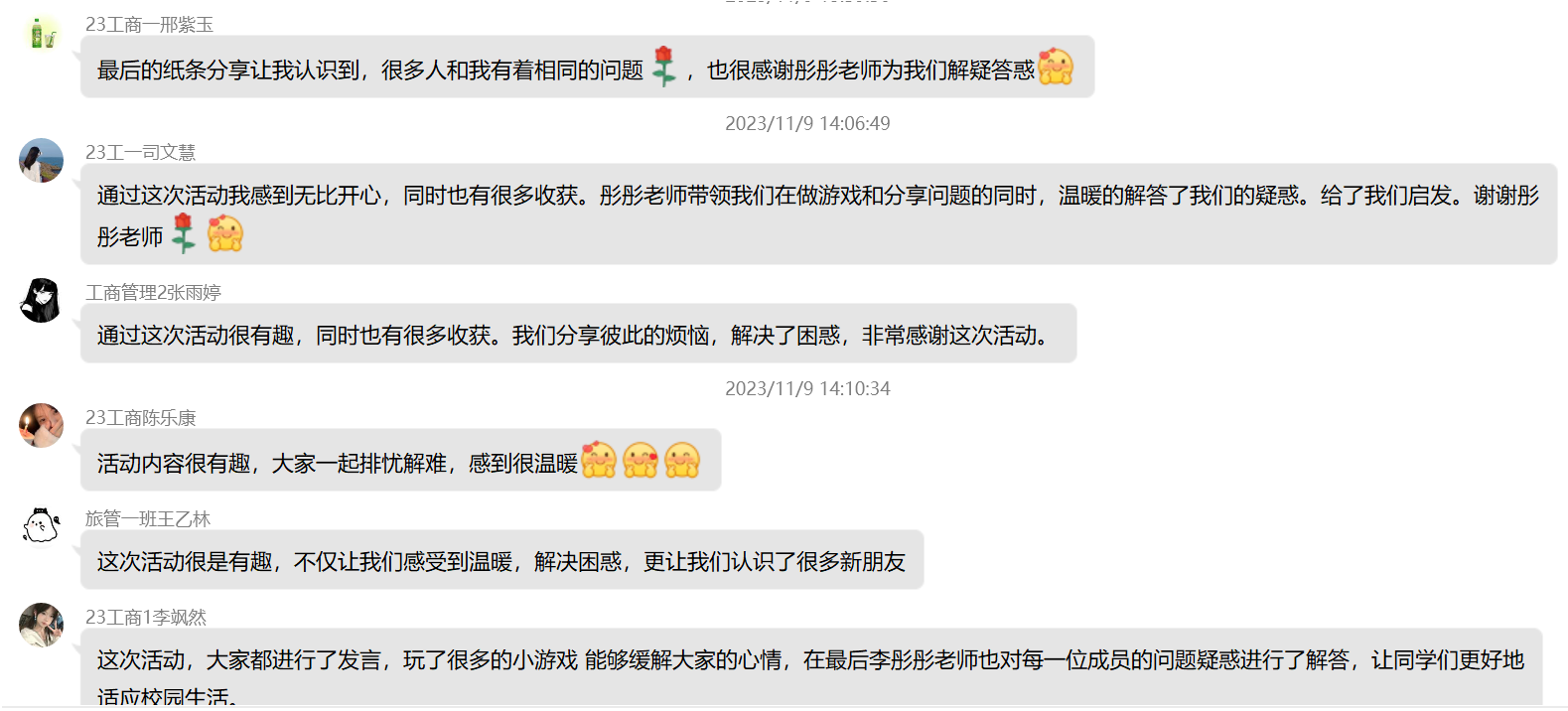 为进一步增强新生对大学生活的了解和适应能力,促进其良好健康心态的形成,工商学院心理工作坊于11月开展“校园明信片”心理团辅活动。本次活动由心理辅导员李彤彤带领,共招募15名新生参与。