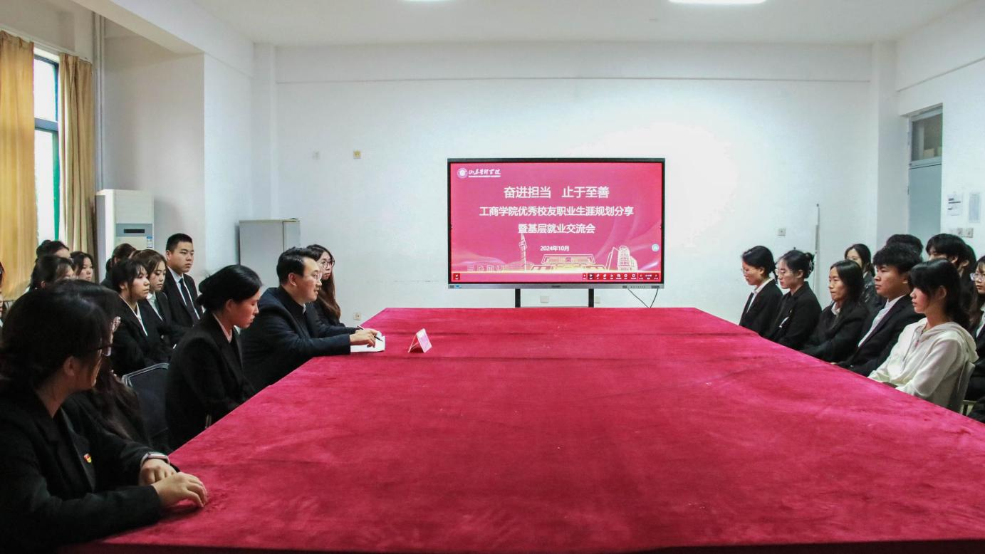为加强在校学生与优秀校友之间的经验互通,构建交流经验新平台,10月26日,工商学院在博学楼203组织职业生涯规划分享会暨基层就业交流会,特邀优秀校友朱家宝及工商学院学生代表出席会议。工商学院党总支副书记秦珑主持会议。