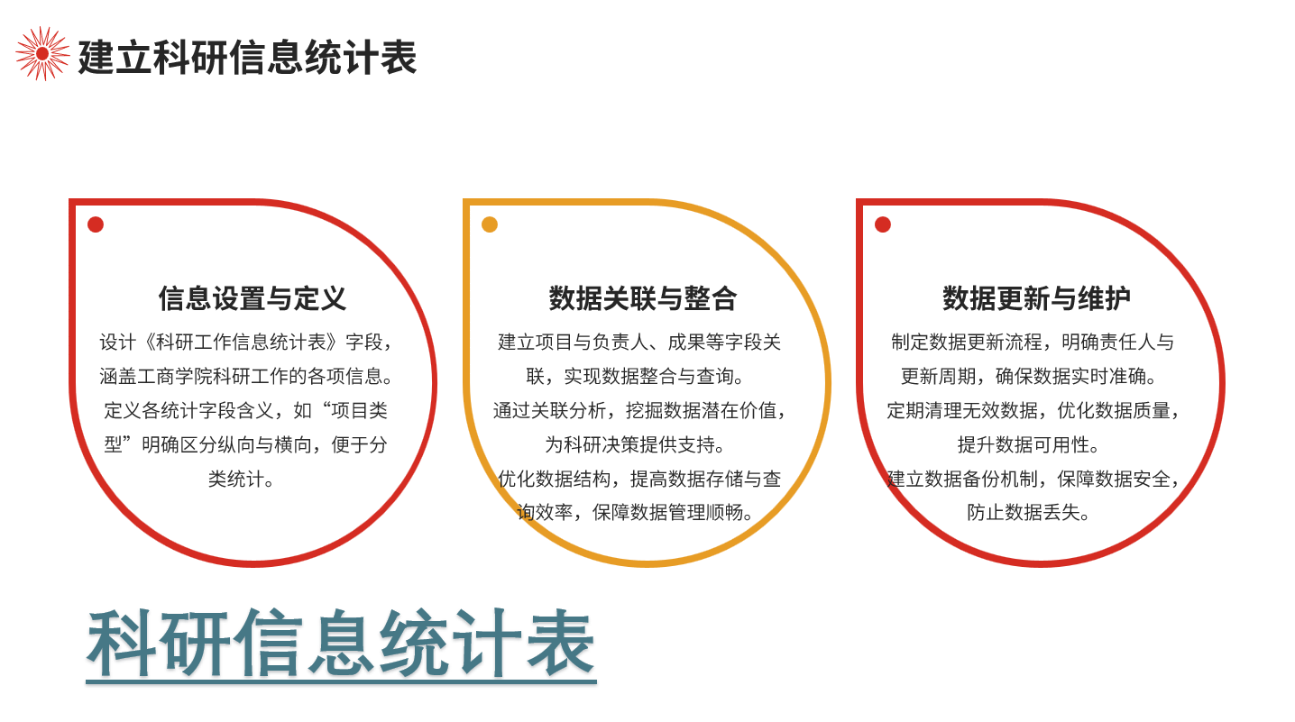 刘宁提出构建科研数据统计表,整合多源科研数据,通过信息整理和数据分析,改进科研秘书的工作方法,提高科研管理工作效率。