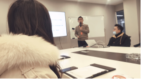 调研团队到达位于济南的快手济南创新发展中心,首先学生们参加了快手直播的培训会,了解了快手新推出的好物联盟的经营模式与操作流程。会议结束后,同学们就直播电商后的供应链等问题与相关专业负责人展开讨论,咨询直播电商背后的供应链系统的运作模式,也了解了物流售后的一些相关内容。
