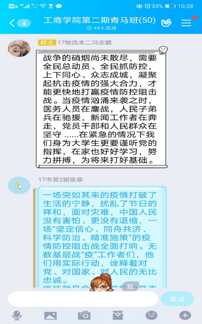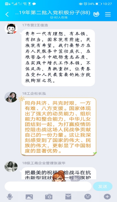 观影结束后,全体同学表示要认真贯彻落实习近平总书记关于疫情防控的重要讲话精神,向战斗在抗“疫”一线的英雄们学习,学习他们勇担使命的精神、保护生命的执着以及立足岗位的坚守。