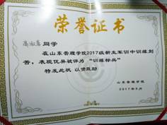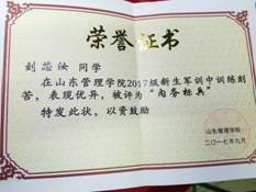 高淑蓉,刘芯汝,任聪等人在军训期间荣获军训内务标兵、训练标兵的称号
