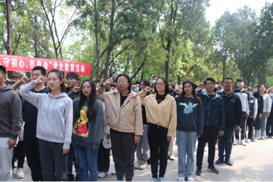 期间,腾元良书记发表讲话,号召全体同学高扬理想信念旗帜,以先烈为镜,净化思想灵魂,继续保持昂扬向上的精神状态,奋发向上。面对鲜红的党旗,全体党员团员庄严地举起右手,重温对党对团立下的铮铮誓言,时刻警醒自己牢记党的宗旨,树立使命意识和责任担当。