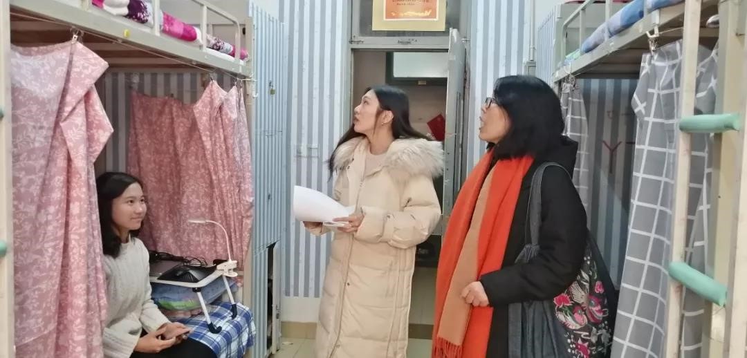为了营造良好的宿舍卫生环境,加强同学们的宿舍卫生安全意识,1月2日中午,在阴丽娜、杨健平、庞嘉萍等班主任老师的带领下,生活部成员对工商学院学生宿舍进行宿舍卫生及安全大检查。