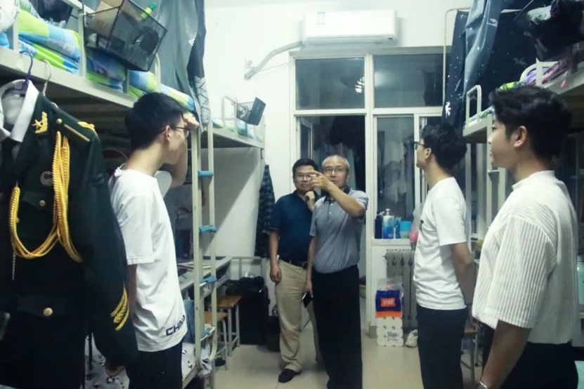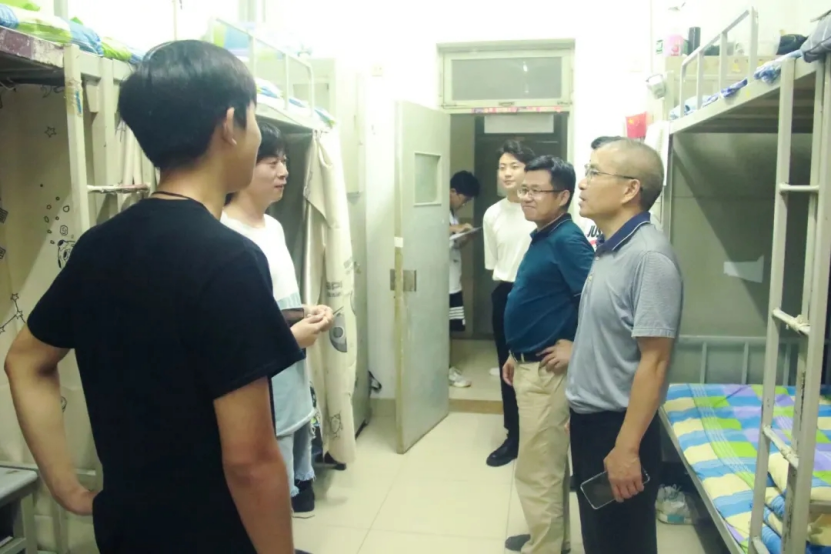 为进一步抓好学风建设和学风指导服务,确保学生精神风貌积极向上,同时对学生迎评工作进行全面准备与改进,9月13号晚8点40分,工商学院党总支书记滕元良,院长胡忠任,辅导员阴丽娜、李彤彤、胡玥、李加鹏、焦舒航、薄杨老师带领学生组织宿管部成员对我院全体学生宿舍进行宿舍安全与卫生检查工作。