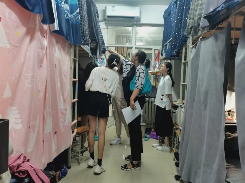 检查过程中,老师们主要针对宿舍卫生、用电安全、消防安全设施进行重点排查,一一说明各宿舍存在的问题并提出改正意见。同时,与同学们进行亲切交谈,叮嘱同学们切实注意宿舍人身财产安全,详细询问每一位同学的个人情况,了解同学们在校生活状态和相关建议。