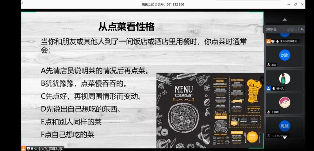让同学们分享了在家期间新增的技能和学习经验。通过这次的互动分享,更加拉进了同学之间的友谊。让同学们更加认识到生命与时间的可贵,并激励大家好好学习。