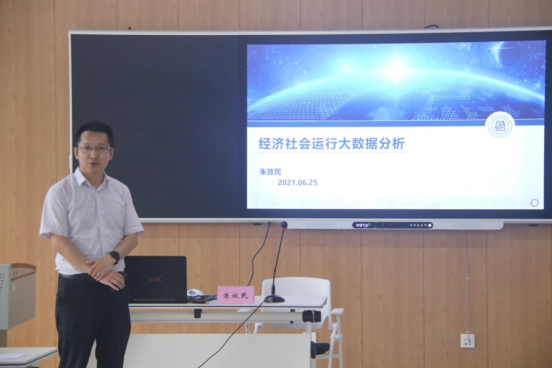 为推动学科专业与产业精准对接,推进产学研协同创新和成果转化,促进新文科专业建设,提高应用型人才的培养质量,,2021年6月25日,工商学院邀请山东省齐鲁大数据研究院院长朱效民做了主题为“经济社会运行大数据分析”的学术讲座。活动由工商学院副院长周蕊主持,工商学院师生参加了本次活动。