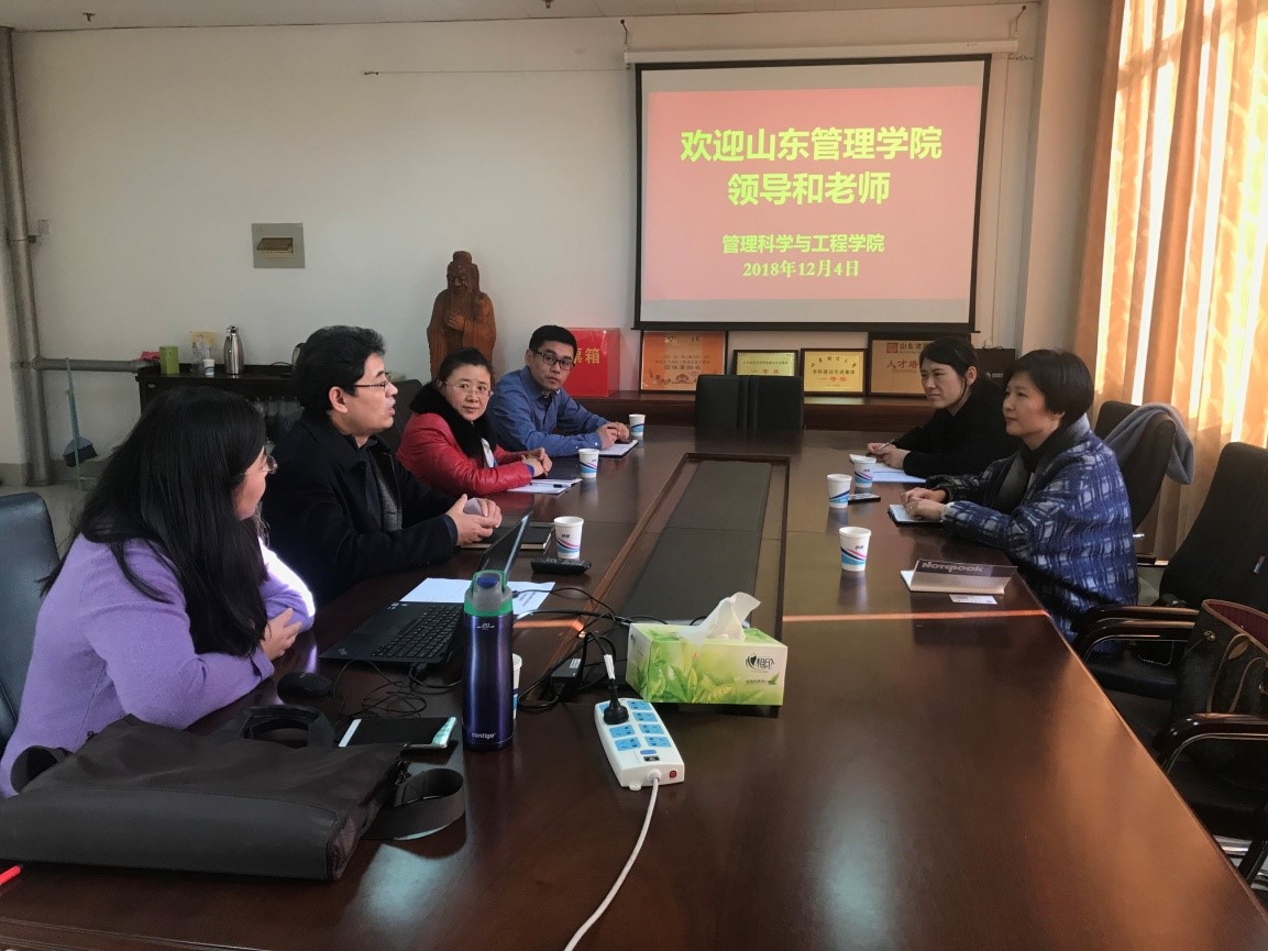 为适应高等教育发展的新形势和新要求,提升学校人才培养质量,更好地促进学生全面发展,工商学院启动了2018级人才培养方案的调研工作。2018年12月4日,工商学院副院长周蕊带领物流管理教研室主任刘阳阳、副主任赵敏前往山东财经大学管理科学与工程学院物流管理系展开人才培养方案的调研。山东财经大学管理科学院与工程学院院长刘培德、物流管理系主任陈爱玲等四位老师热情接待了我院教师。