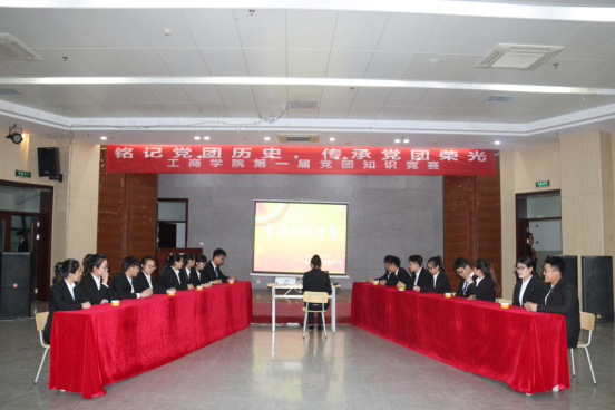 为了贯彻落实十九大精神,树立正确的政治思想道路,增强同学们对于党团知识的了解和认识,2018年4月22日下午6:00我院于学校小礼堂举办了工商学院第一届党团知识竞赛。