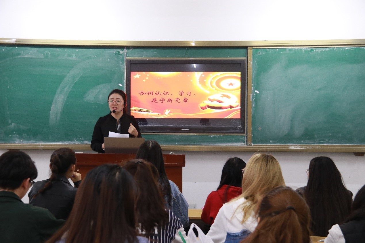 3月27下午6点,工商学院进行了入党积极分子党课培训活动。工商学院党总支副书记李丽娜老师就“如何认识、学习、遵守新党章”为主题进行了细致讲解。
