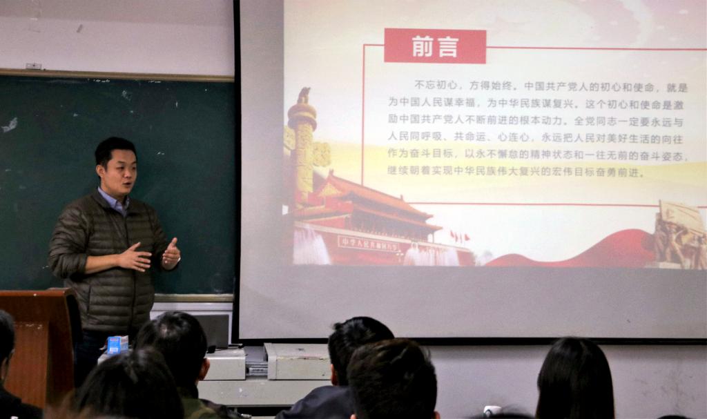按照学校党委“不忘初心,牢记使命”主题教育实施方案要求,11月7日下午,工商学院学生党支部书记秦珑以“端正入党动机,争做合格党员”为主题讲授党课。