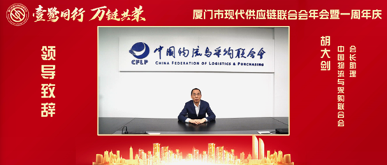 2024年1月20日,厦门市现代供应链联合会年会暨一周年庆祝活动成功举办。中国物流与采购联合会会长助理胡大剑为大会视频致辞。