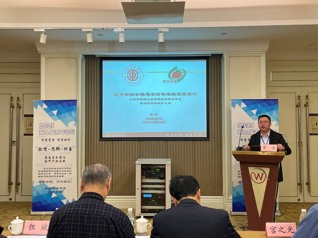 会议同期组织了多场专题分论坛、青年论坛,百名代表通过主题演讲、互动沙龙、座谈会等形式分享了自己的研究成果和经验体会。物流研究所常杰博士在青年论坛中,以研究所成果《客货邮融合畅通农村快递物流微循环》为题,介绍了乐陵市快递物流服务体系以及客货邮融合发展新思路,得到专家一致认可,充分展示了物流研究所产教融合与社会服务成果。