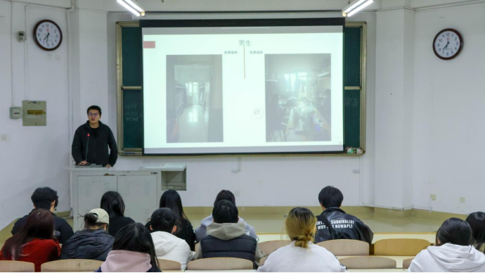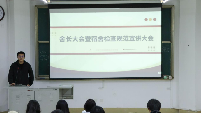 大会伊始,工商学院辅导员宣东昊现场展示了学院优秀宿舍,动员全体宿舍长向优秀宿舍看齐。此外宣东昊就本学期新修订的宿舍管理条例进行详细解读,同时围绕消防安全、用电安全、财产安全及人身安全等方面展开细致讲解。通过列举真实案例,敲响安全警钟,让宿舍长深刻认识到宿舍安全的重要性。