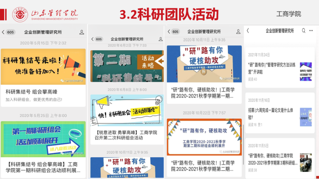 副院长周蕊结合近七年的科研管理工作体验,从“面向群体”和“面向任务”两个角度谈了对于科研管理工作的特点的认识。又以“共创”为视角,解析了科研管理工作的四个代表性创新项目的形成过程。下一步工作中紧紧围绕申硕目标,重点打造特色研究方向,持续抓好学科团队建设以及高质量成果、项目的培育工作。