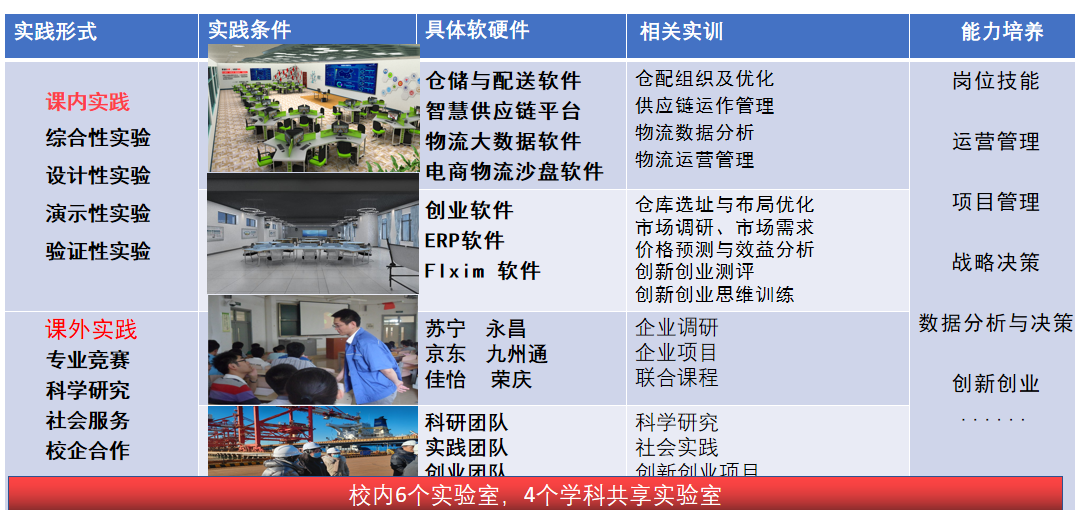 专业突出“数字+物流、实践+创新”的培养特色,教学体系设计以数字化物流管理人才为主体,以岗位素质模型和职业能力认证为驱动,对接区域产业数字转型的人才需求。