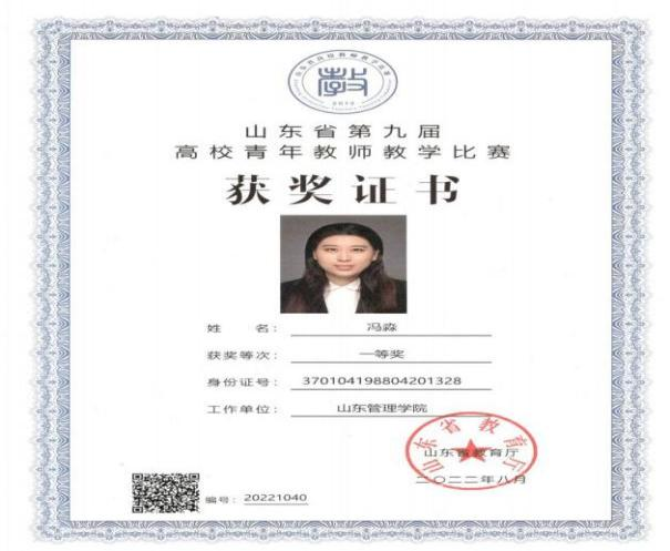 获评山东省高校教师创新教学大赛一等奖1项、二等奖1项、三等奖1项;